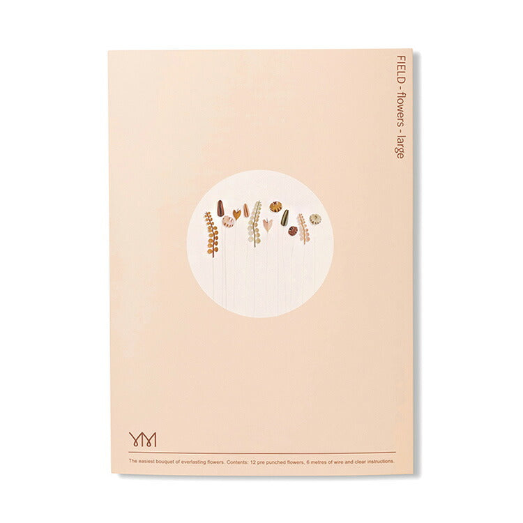 アザミ、葦穂、ベリーの枝、アイリスの4種・計12枚のパーツはカットされ折り目も付いているため、ハサミなどは必要ありません。フラワーワイヤーを希望の長さにカットし、各パーツの穴に通して自分で花をつくります。
