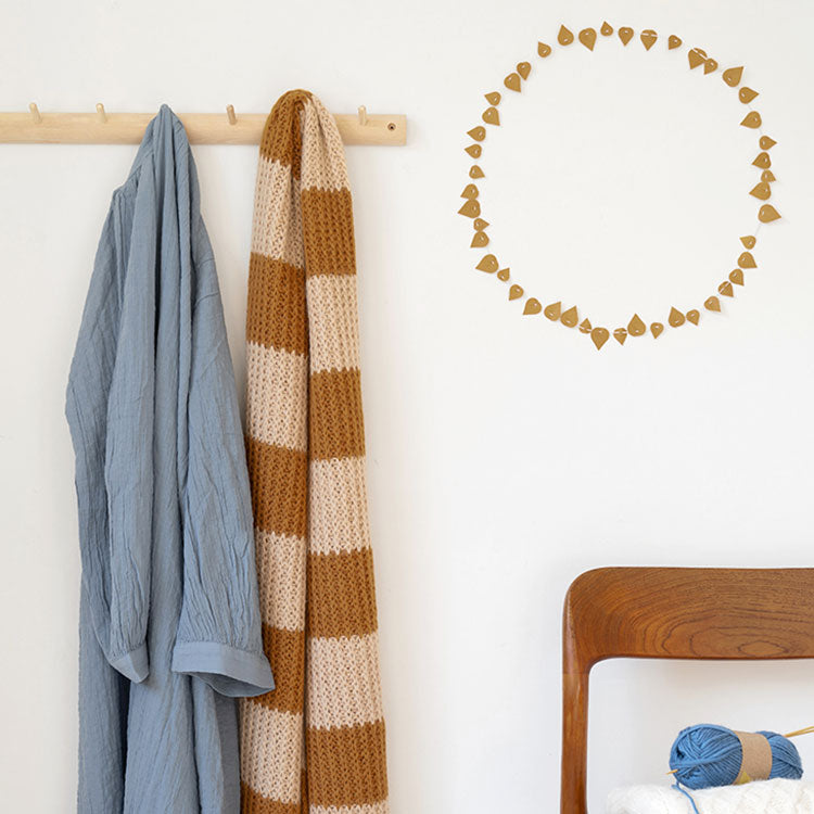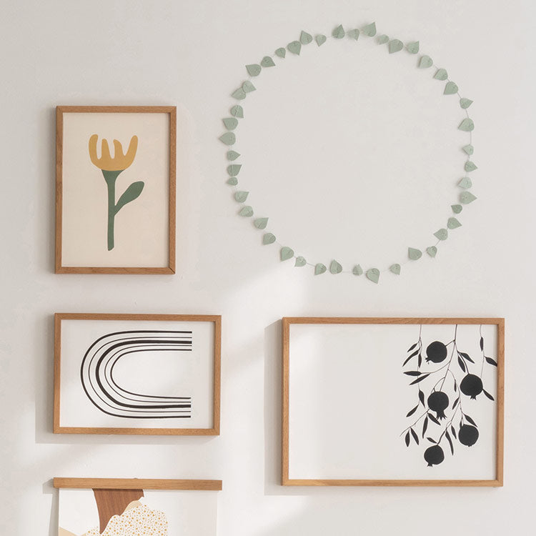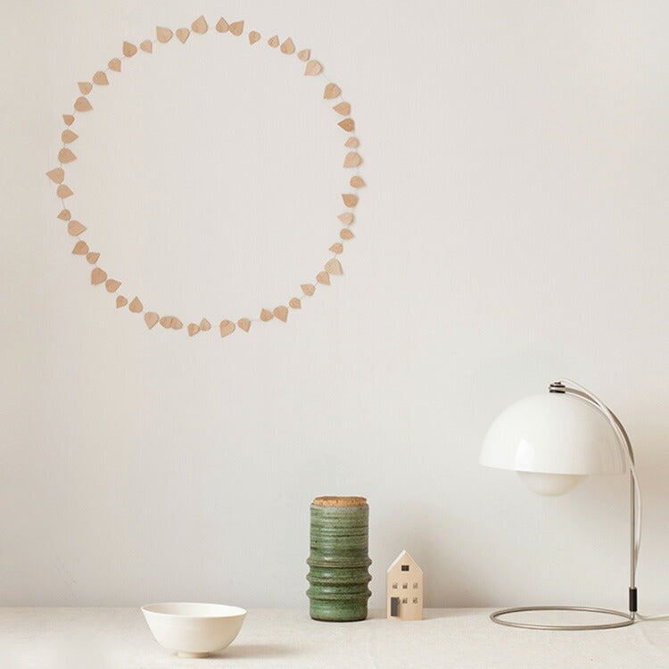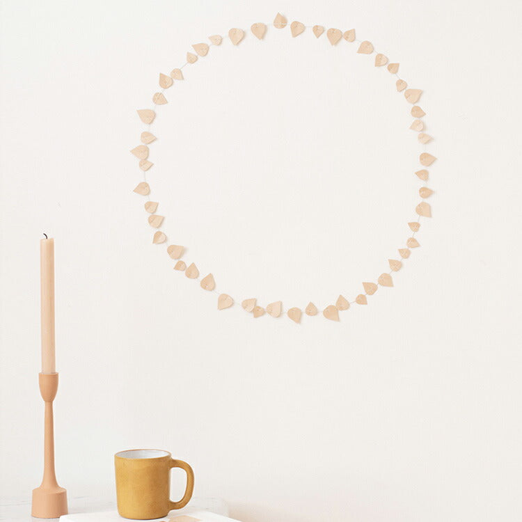 葉っぱにワイヤーを通して飾る、小枝モチーフのウォールデコです。ワイヤーを曲げて花輪をつくりモビールにしたり、テーブルの真ん中に蔓のように這わせたり…自由なアイデアでお楽しみください。