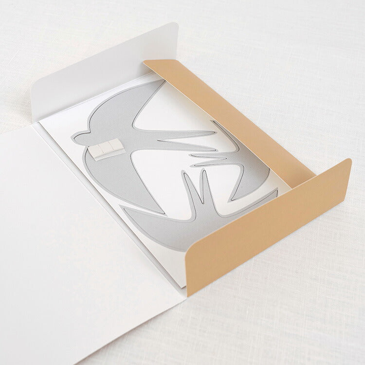組み立て前はフラットな状態ですので、封筒に入れて大切な方へ送っても素敵です。受け取られた方のお家でつばめが羽ばたきますよ。