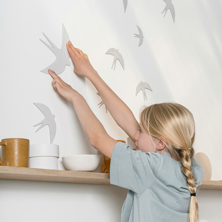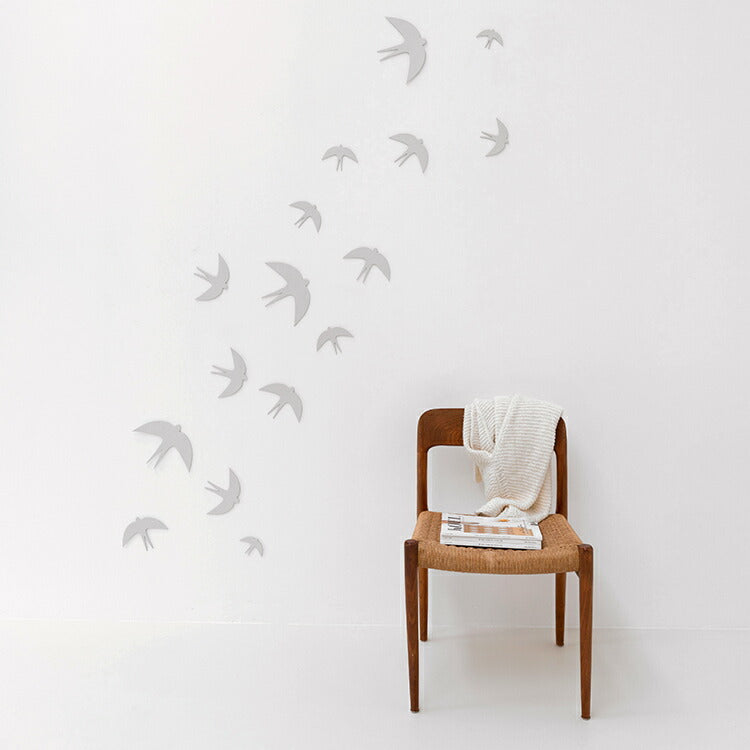 お部屋の中に澄んだ空気を運んでくれる、つばめのウォールデコレーションです。丈夫な厚紙のつばめは、台紙から取り出し付属の粘着パテで簡単に飾ることができます。もちろん、取り外しも簡単です。