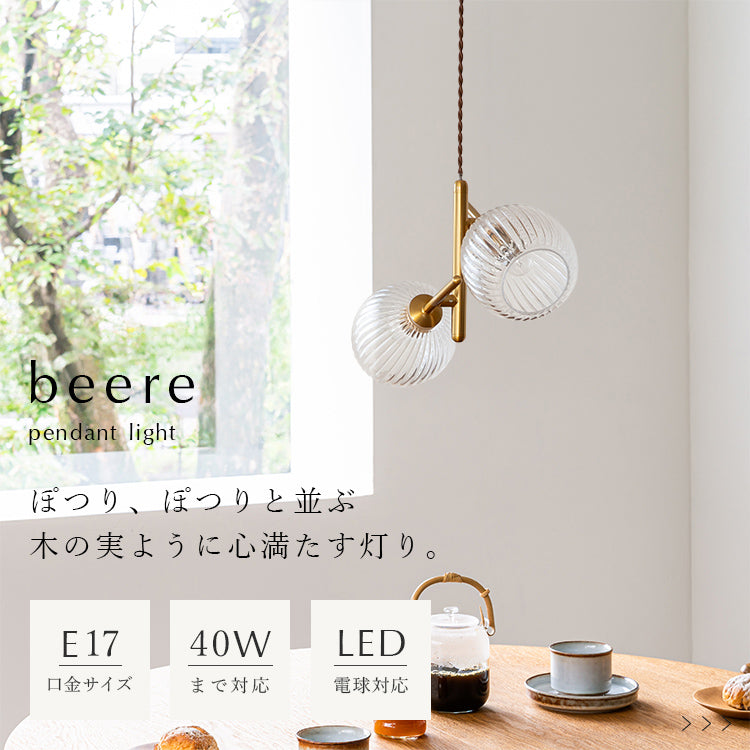 柔らかな形が連なり、空間に静かなリズムを生むペンダントライト「 beere 」