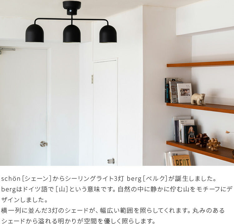 曲線と直線で構成されたミニマルなデザインが美しい、3灯シーリングライト[ berg ]