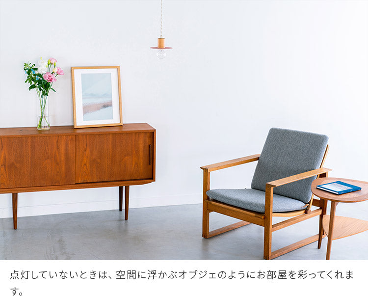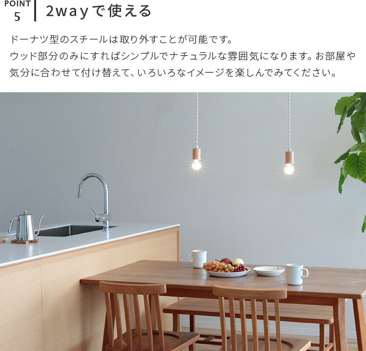 ドーナツ型のスチールシェードと白木の美しい調和をお楽しみください。