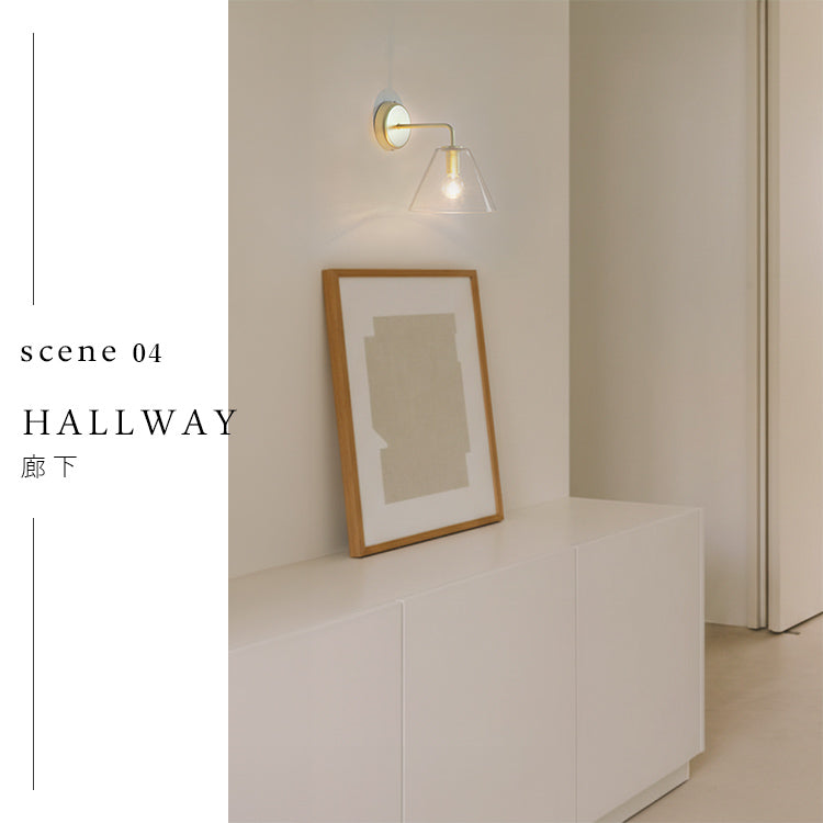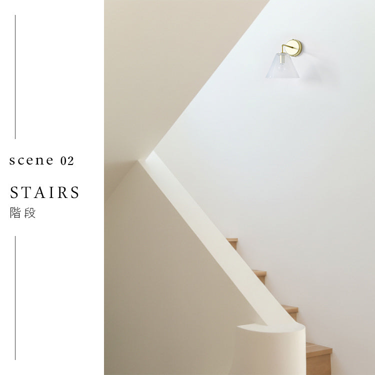 シンプルで透明感がある三角形のガラスシェードと落ち着いたゴールドの組み合わせは様々な空間に馴染み、お部屋のインテリアをスタイリッシュに演出します。