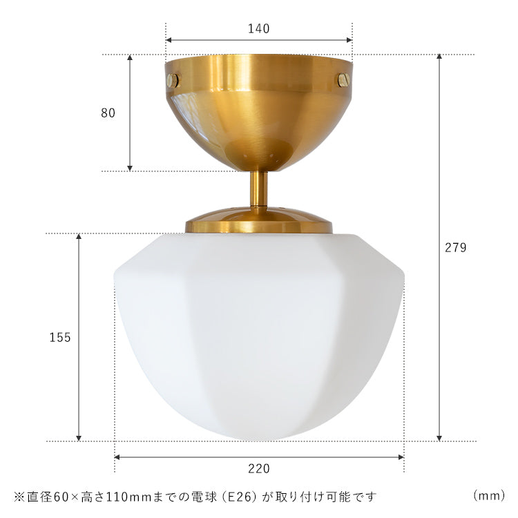 推奨電球サイズ:直径60×高さ110(mm)までの電球(E26)が取り付け可能