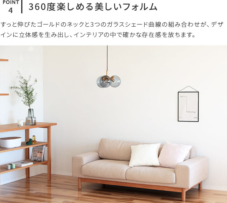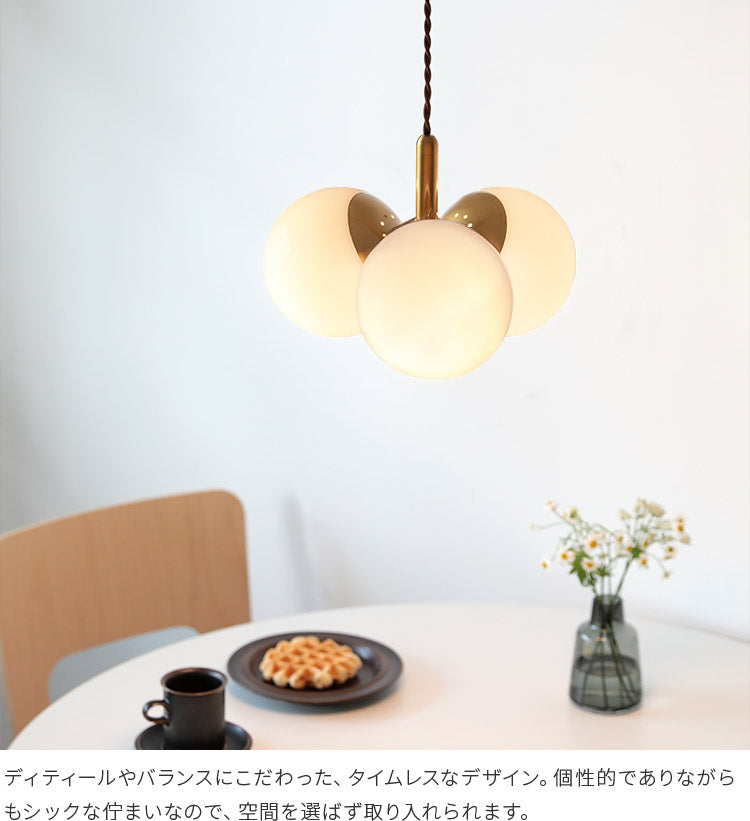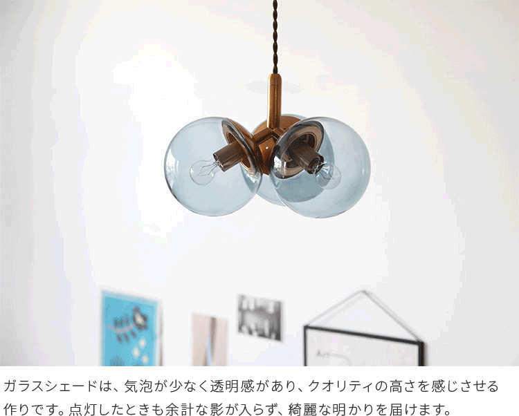 柔らかなフォルムのガラスシェードは、まるで空中に浮かんでいる星のよう。