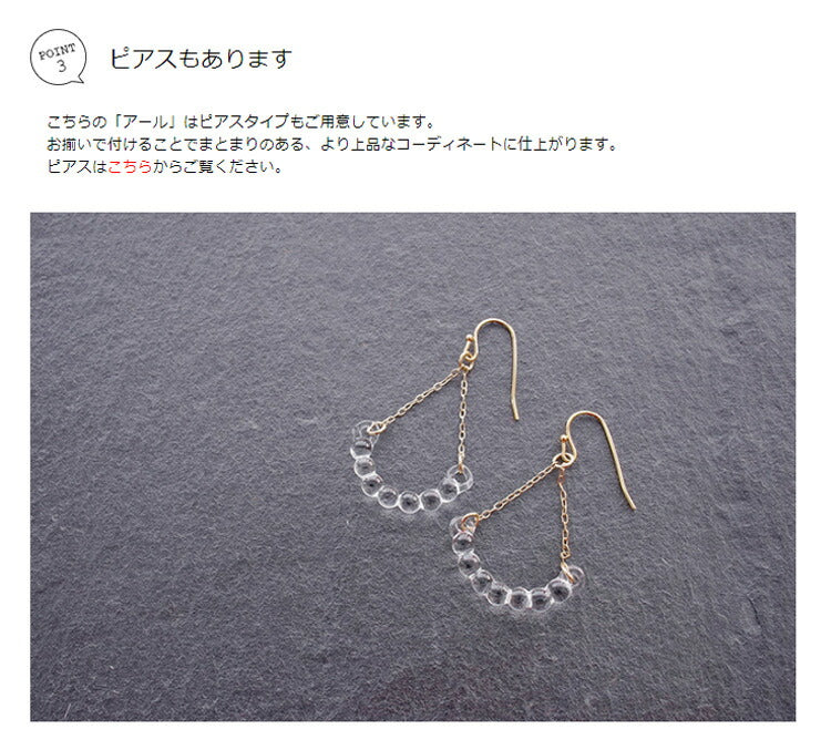 ガラス職人が丁寧に作ったガラスのアクセサリーは、 上品で、透明感のある雰囲気を演出してくれます。