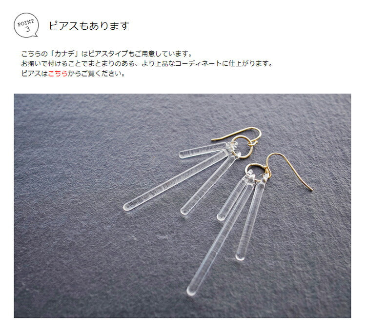 ガラスロッドが美しいカナデタイプにはピアス カナデもございます。