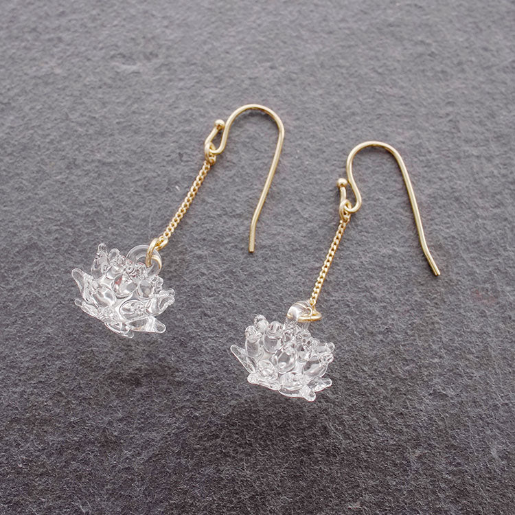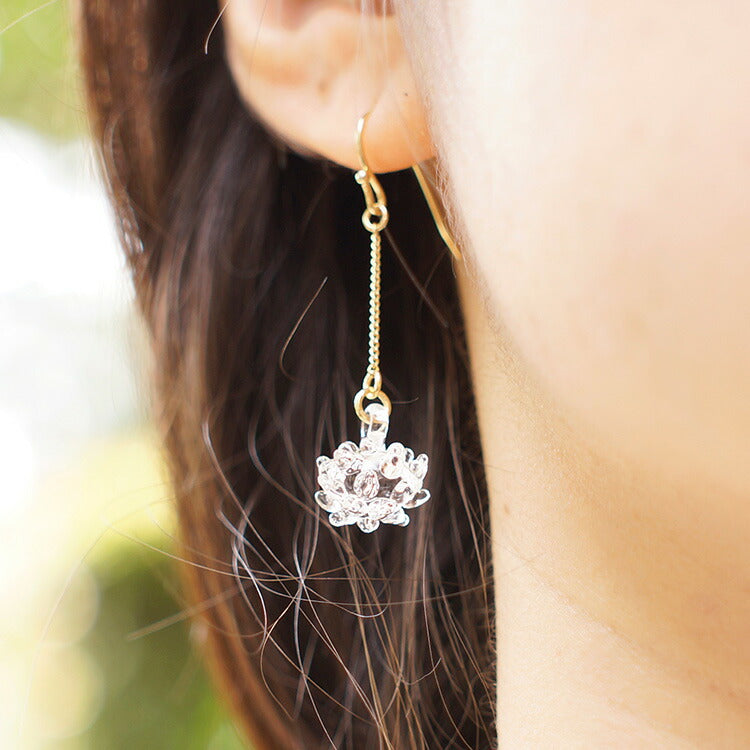 美しいガラスのシロツメクサの花が1輪あしらわれたピアス「ピアス・シロツメクサ」