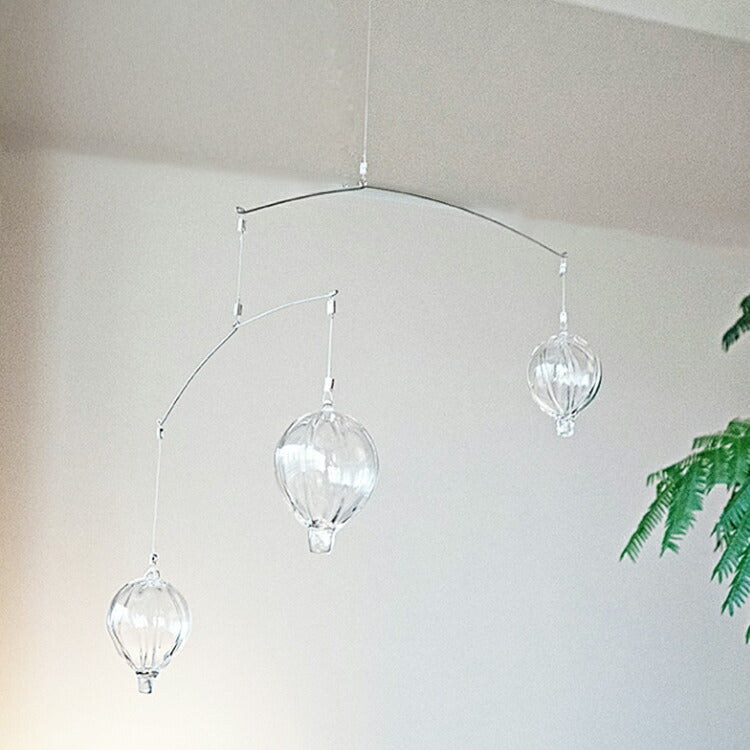 わずかな人の動きや空気の流れを受け取って、ガラスの気球がふわりと空を飛ぶようなデザインです。