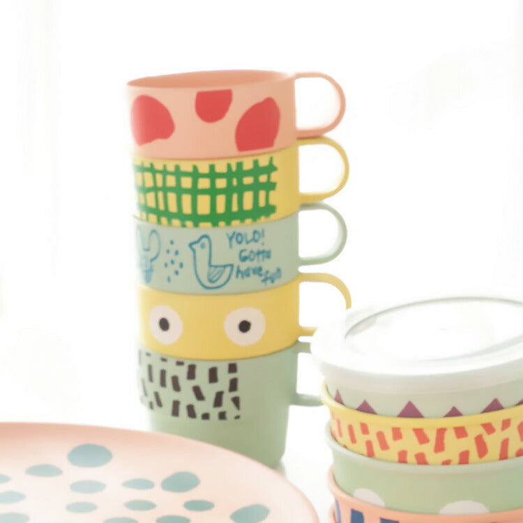 手描きのあたたかさとポップな色使いがミックスされたデザインは食卓を楽しくしてくれそう。