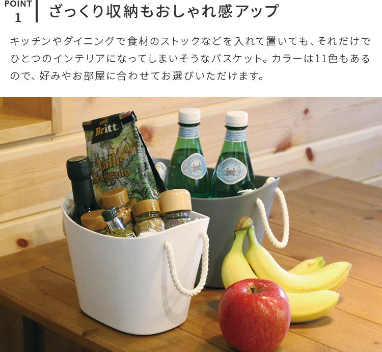 キッチンやダイニングで食材のストックなどを入れて置いても、それだけでひとつのインテリアになってしまいそうなバスケット。カラーは11色もあるので、好みやお部屋に合わせてお選びいただけます。