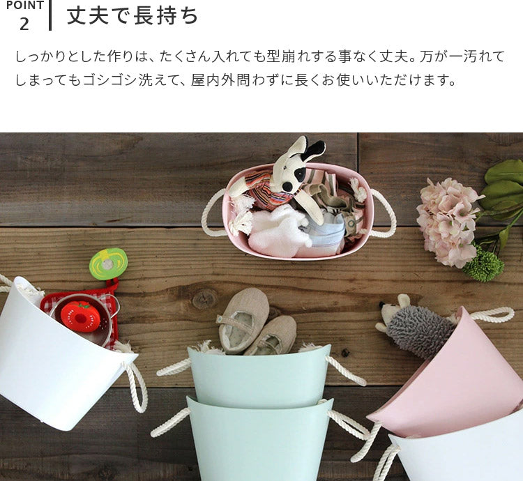 お家の中の収納やお出かけ時のカゴとして、幅広くお使いいただけます。