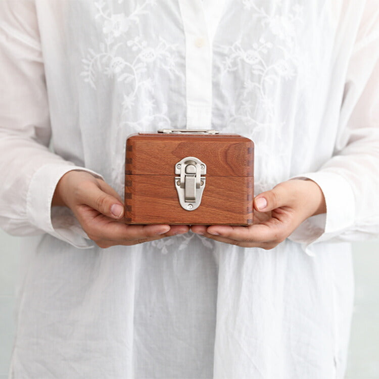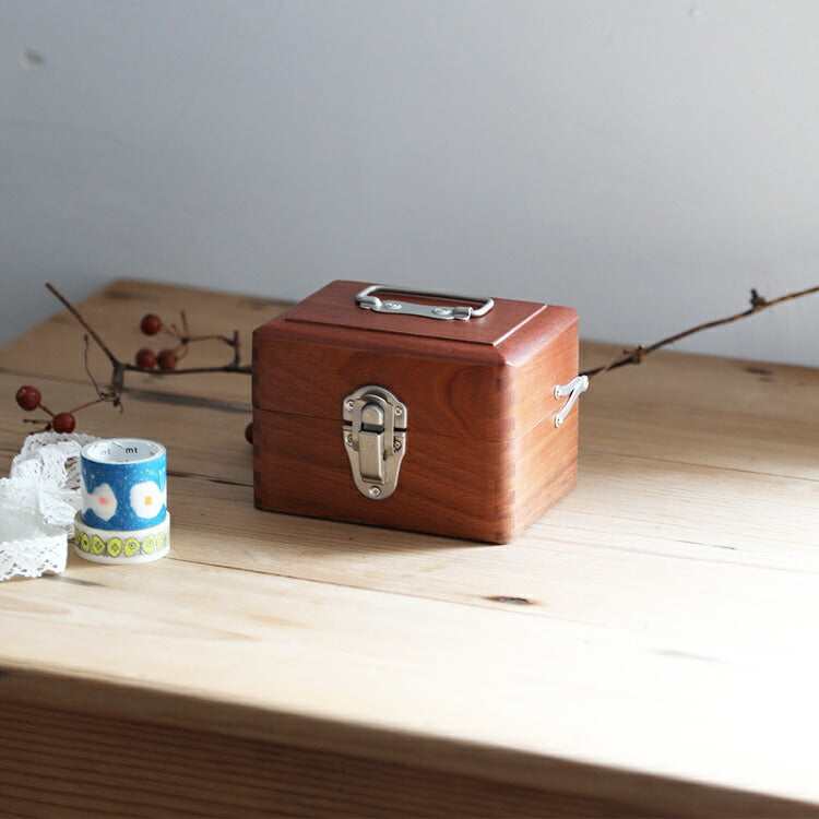 ナチュラルな存在感とアンティークなぬくもりを感じる手提げ小箱。 散らかりがちな小物などをしまっておくのにピッタリです。印鑑やスタンプ、コスメにアクセサリー、ちょっとした常備薬やサプリなどなど...こまごましそうなものは、この手提げ箱にスッキリ収納してしまいましょう!持ち手が付いているので、外に持ち出す際もラクラクです。末永く愛用していただけるように、しっかりとした作りになっており、丁寧に細部まで伝統的な木工技術によって作り上げられています。使えば使い込むほど風合いが増し、愛着の湧くアイテムです。