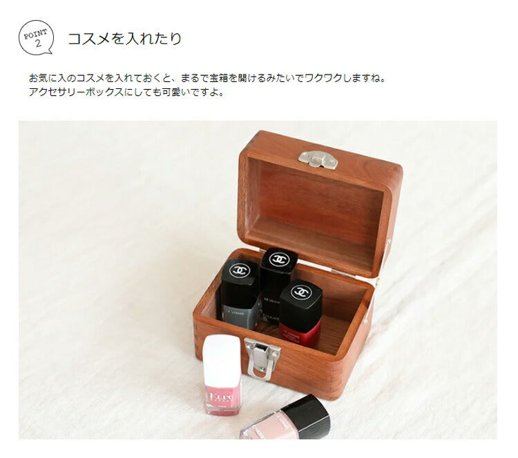 ひとつひとつ丁寧に作られた木箱は、小さくてもしっかりとした作り。アクセやブローチなど、お気に入りの可愛いものをたくさん入れたくなりますね。