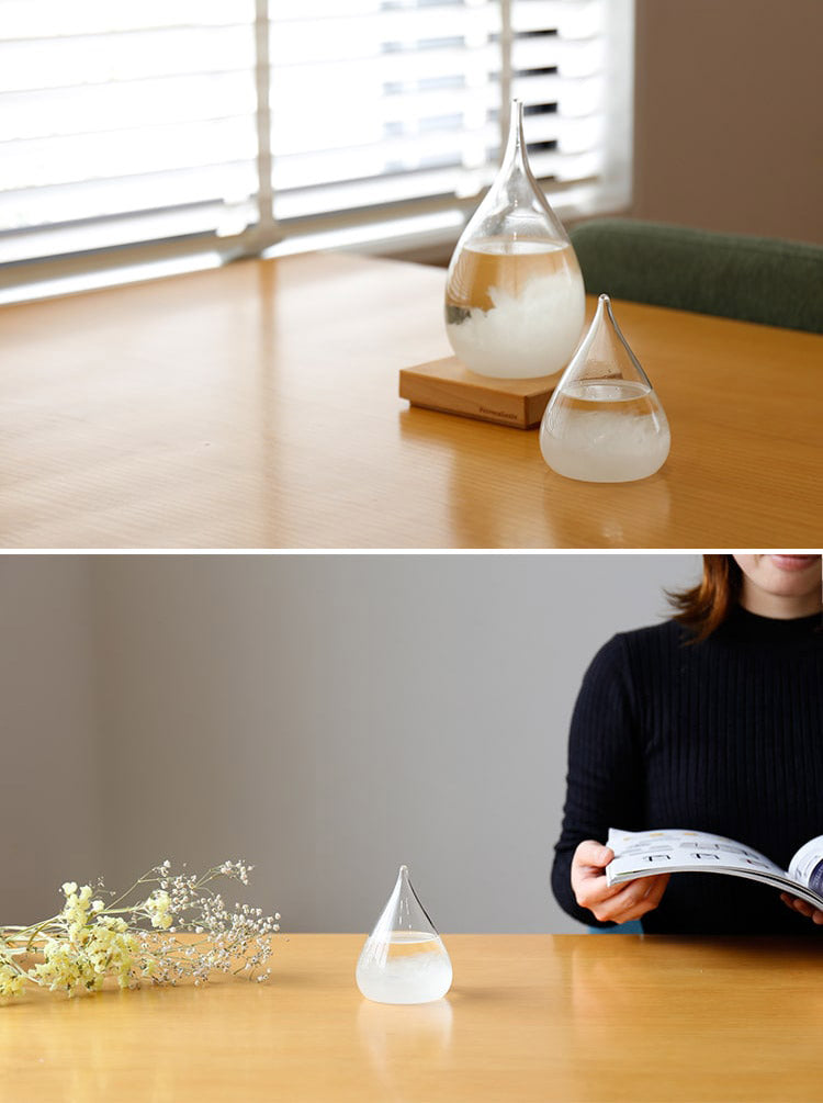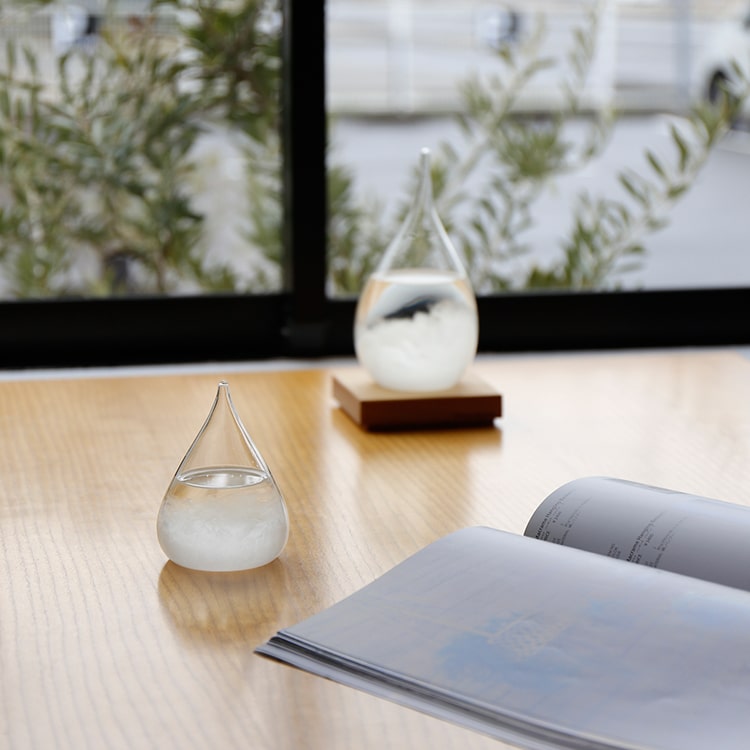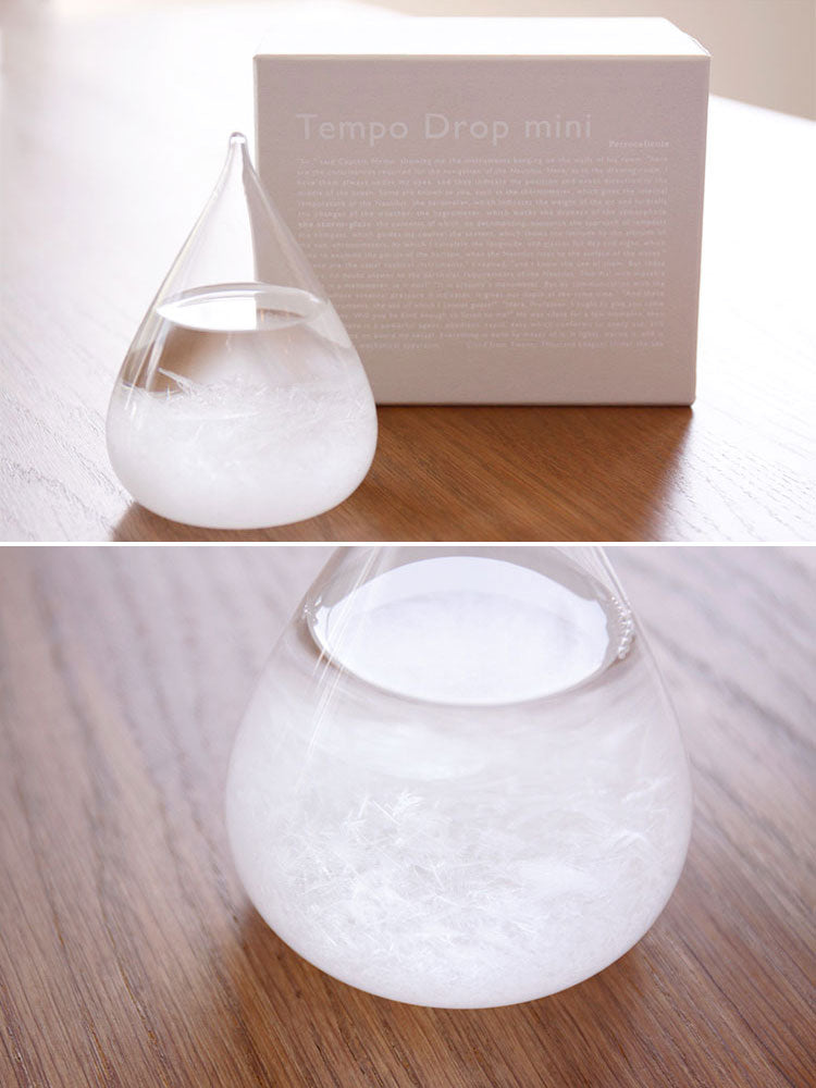 Tempo Drop mini は、19世紀ヨーロッパで主に航海時の天候予測器として使われいた 『ストームグラス』 をモチーフにしています。