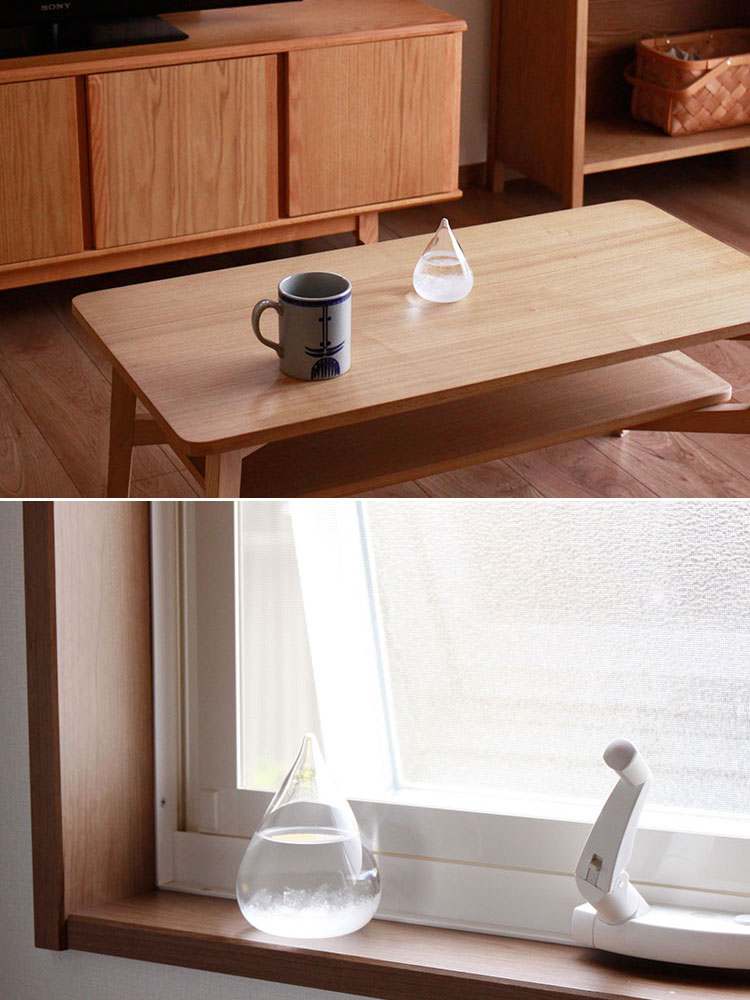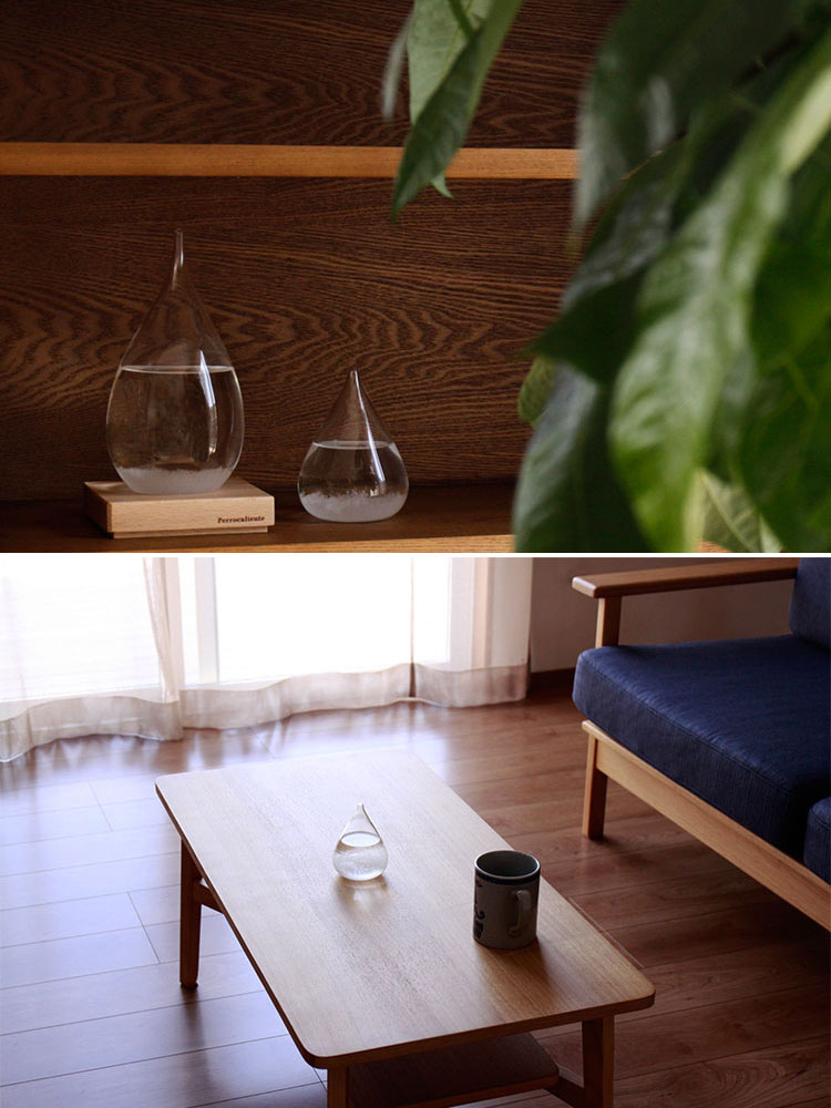 ※ストームグラスは特に気温の変化に反応します。設置する際は空調機が直接当たらない、気温の変化が起こりやすい玄関などの場所がおすすめです。