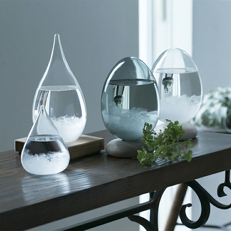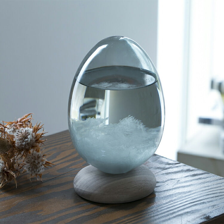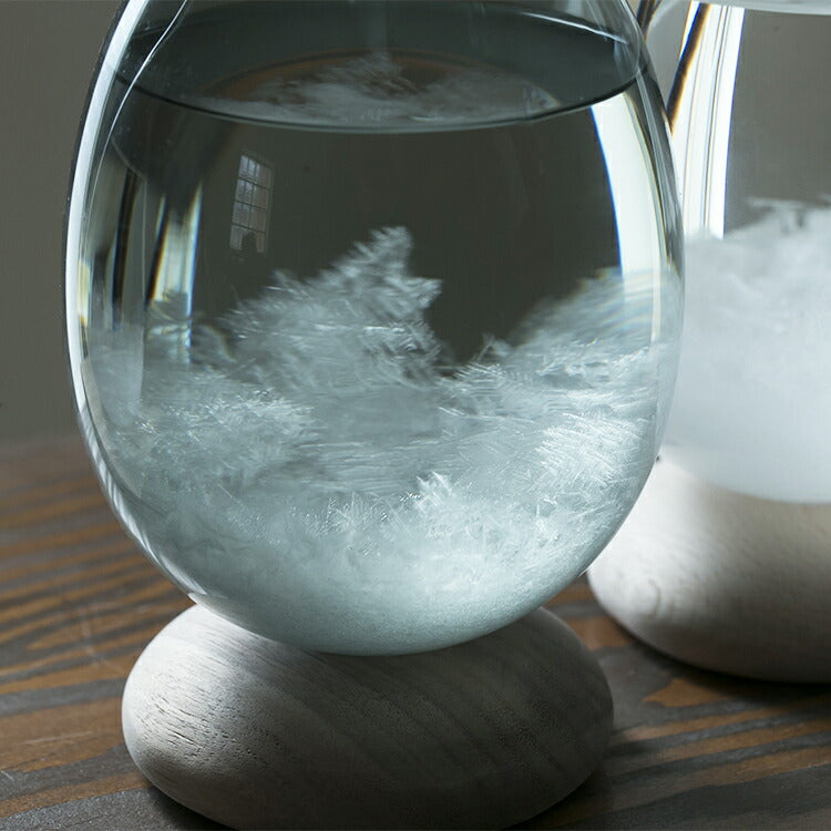 ストームグラスは、19世紀のヨーロッパで主に航海時の天候予測器として使われていました。季節・気圧・天気などに応じて、変化する結晶を観察することができます。現代では予測器としての実用は難しいですが、日々変化する結晶の様子をお楽しみください。