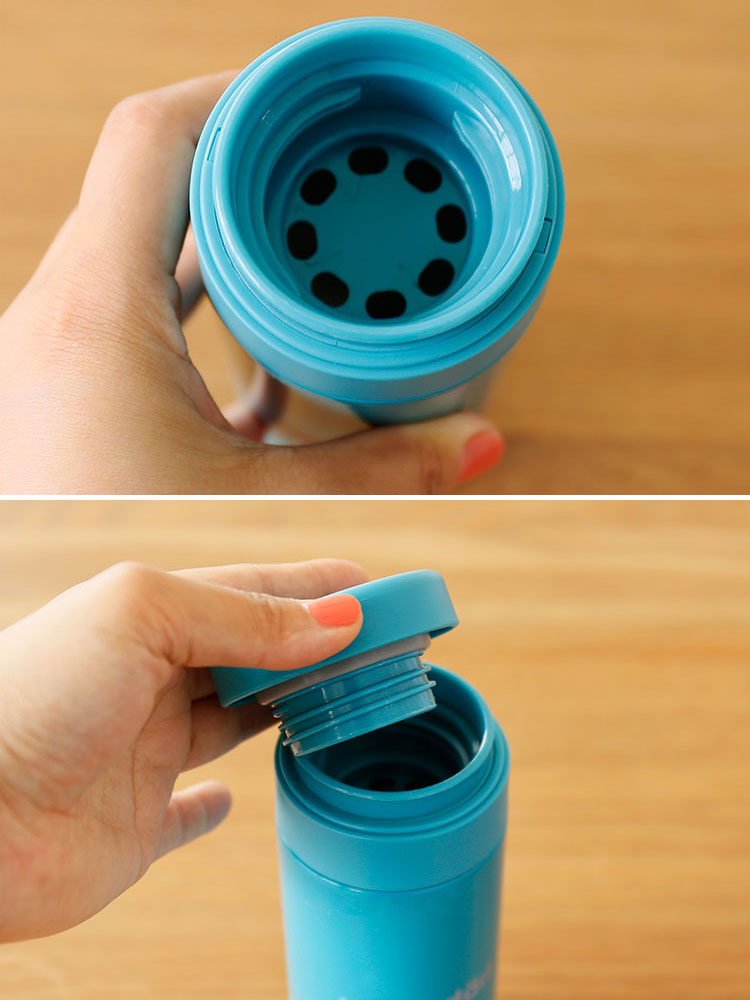 内蓋をすると飲み物を飲みやすくなり、氷留めにもなります。