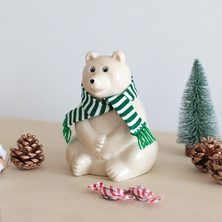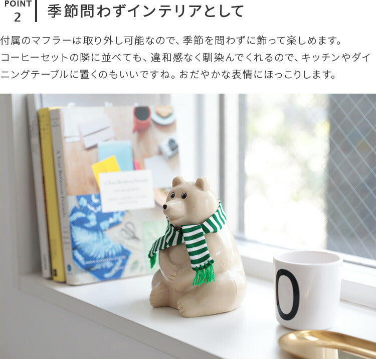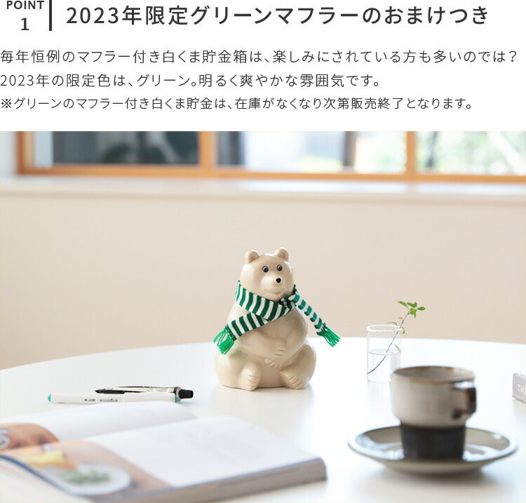 北欧から海をこえて白くまの貯金箱が届きました。「楽しみにしている」という声が多い期間限定のマフラー付き白くま貯金箱。