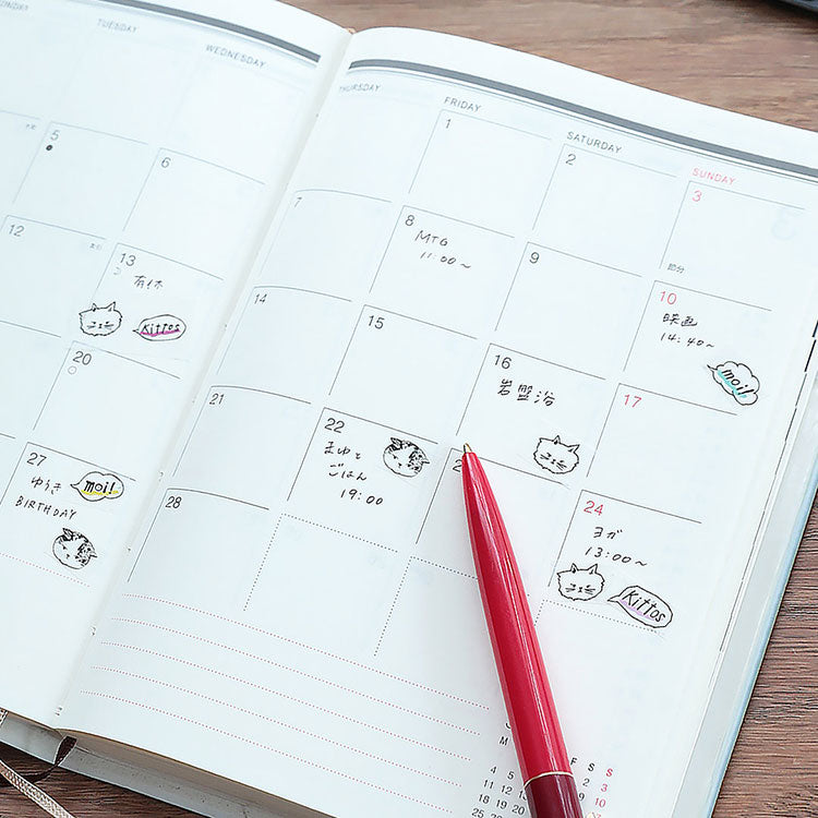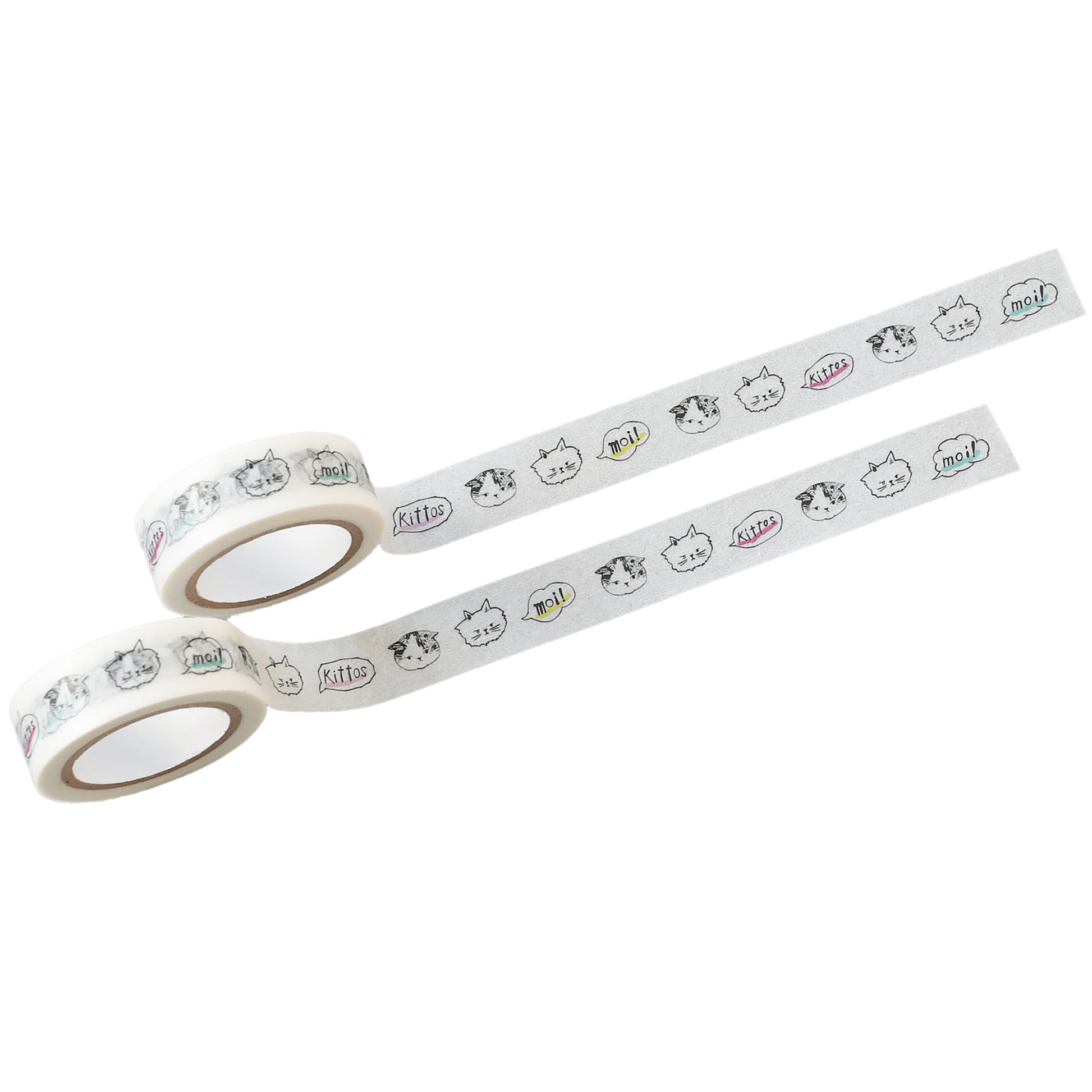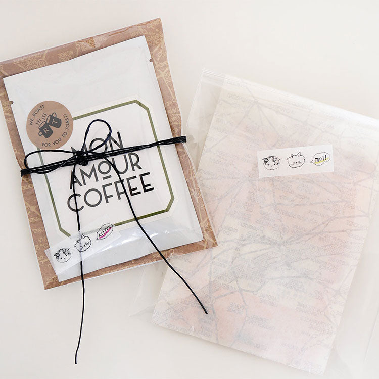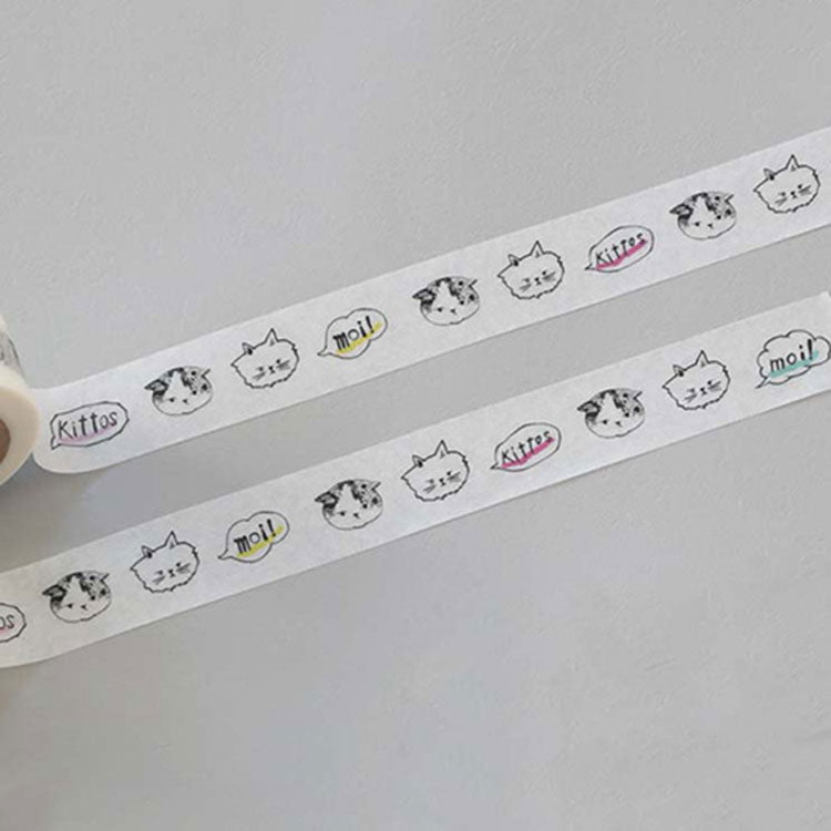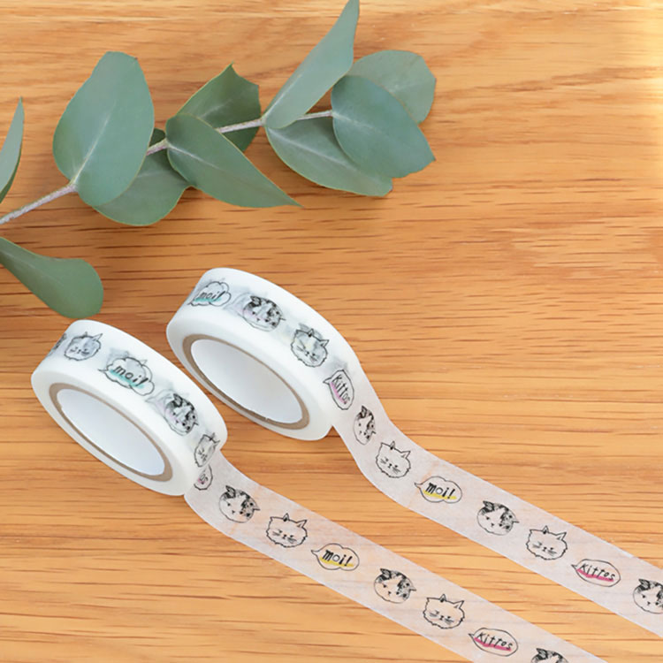 familj [ファミーリ]はスウェーデン語で家族という意味です。マスキングテープには、可愛らしい猫ちゃんとフィンランド語で[ kiitos / ありがとう ][ moi / やあ! ]の2つの言葉が書かれています。