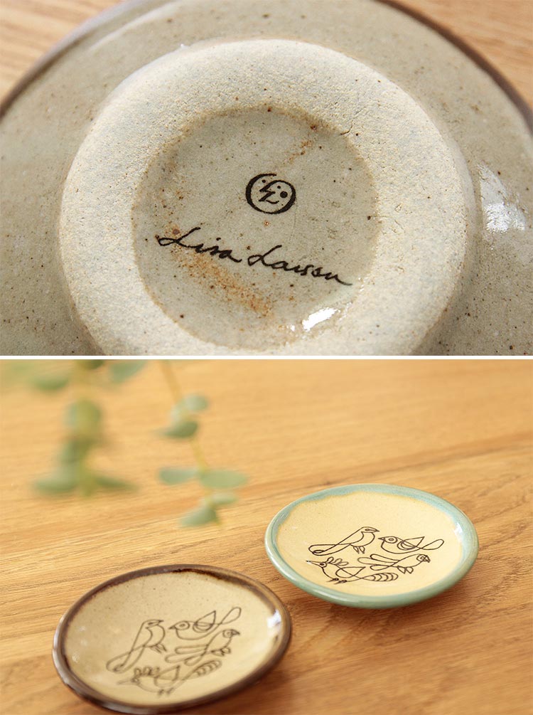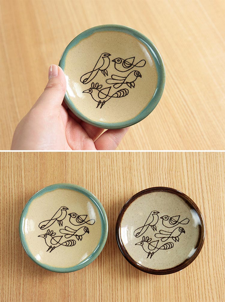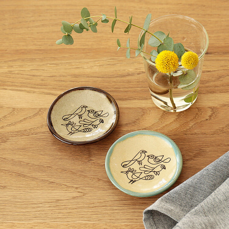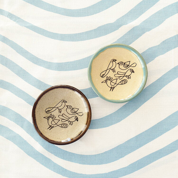 鳥の絵柄が軽やかで爽やかな益子焼のプレートです。