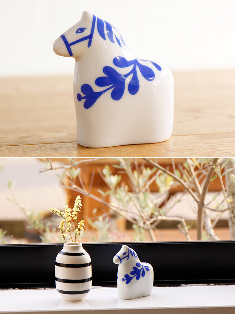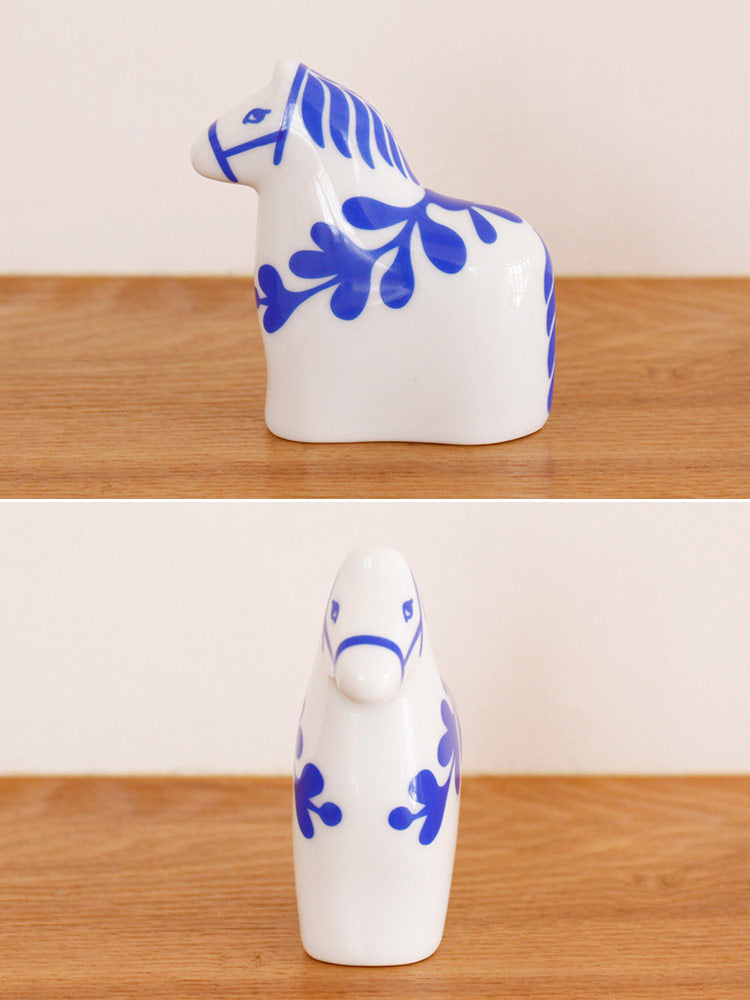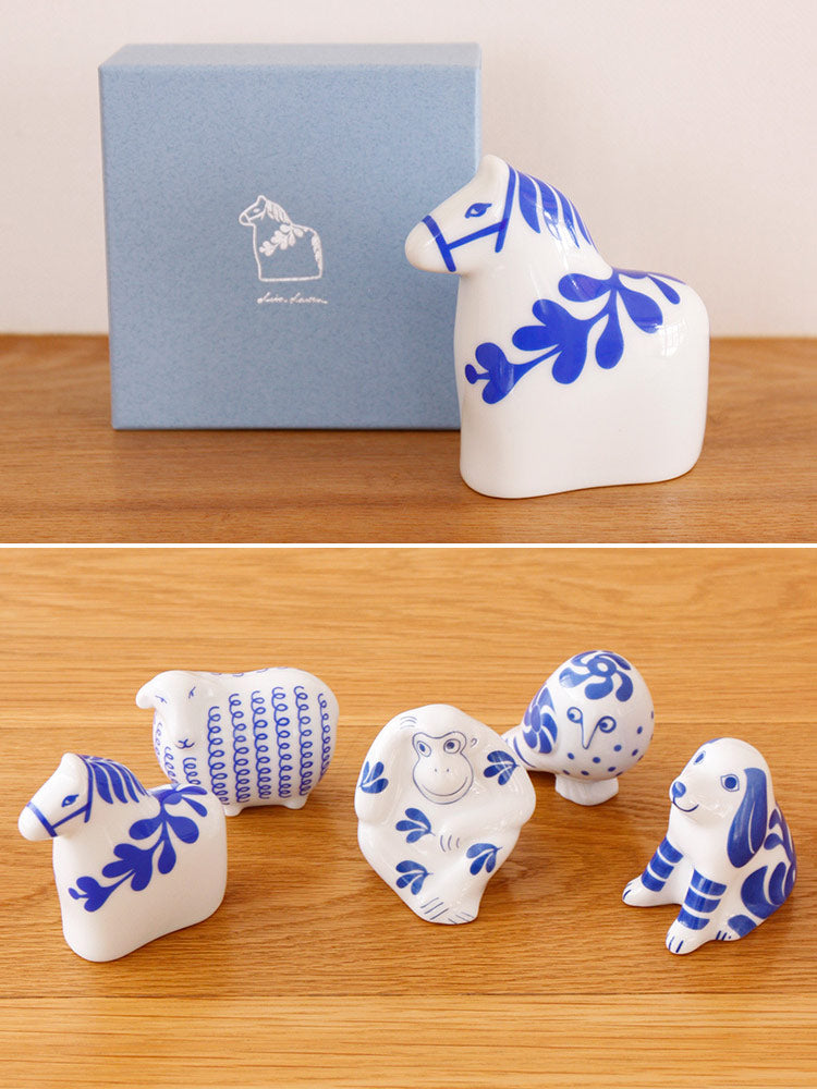 北欧スウェーデンの陶芸家リサ・ラーソンが、日本の干支をモチーフに制作した置物シリーズの記念すべき第一作。スウェーデンの伝統的な木彫りの民芸品で、「幸せを運ぶ馬」といわれるダーラナホースをモデルに、午(うま)年である2014年に誕生しました。
