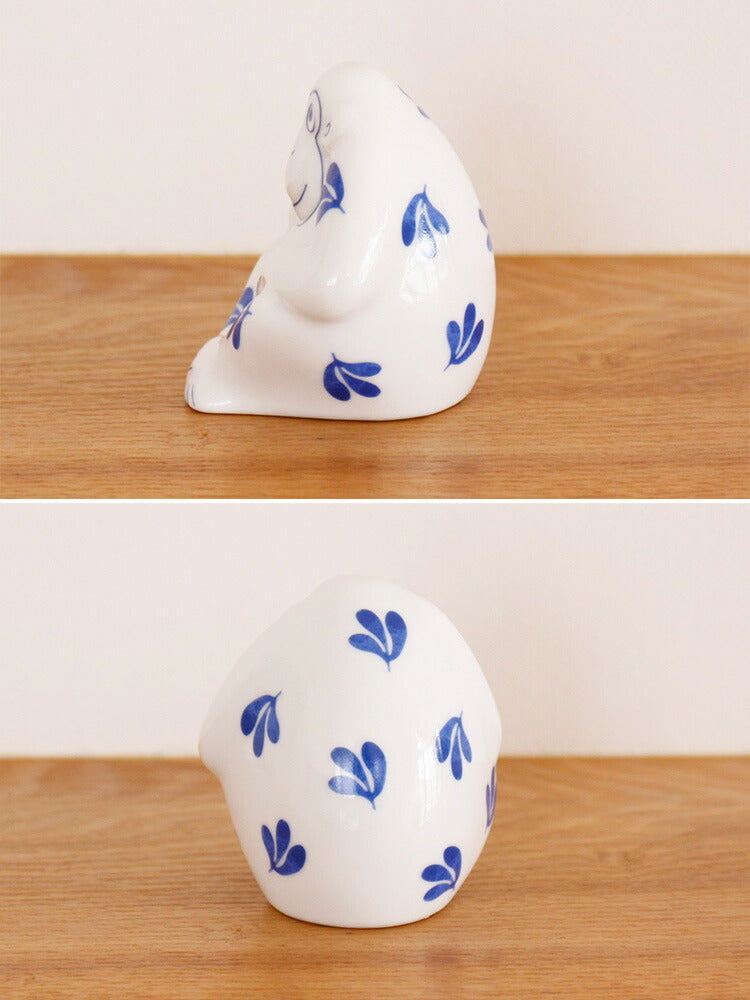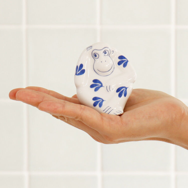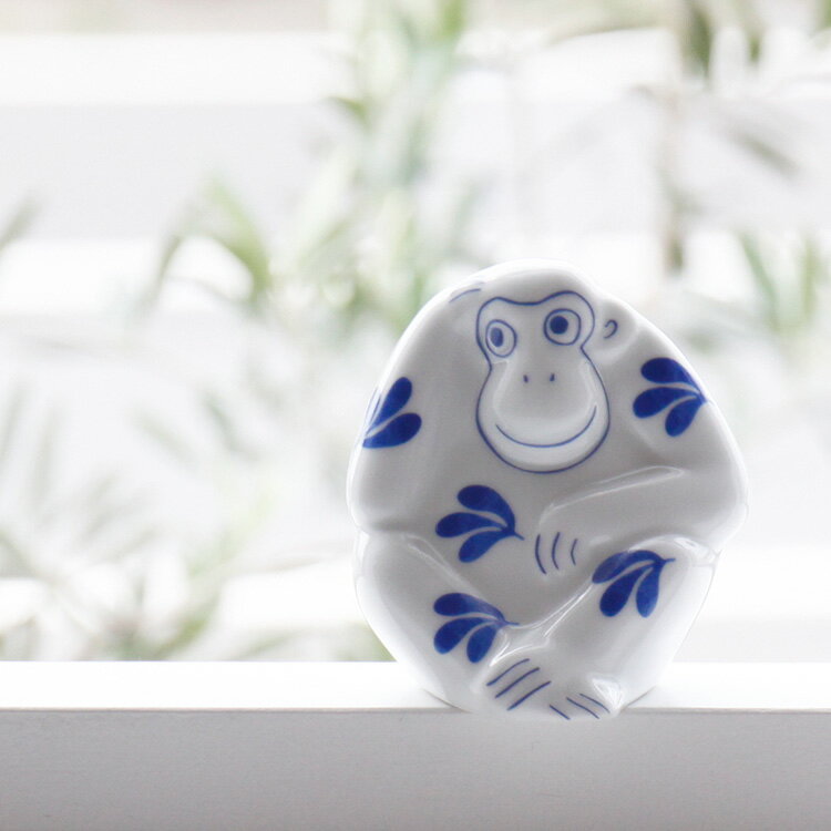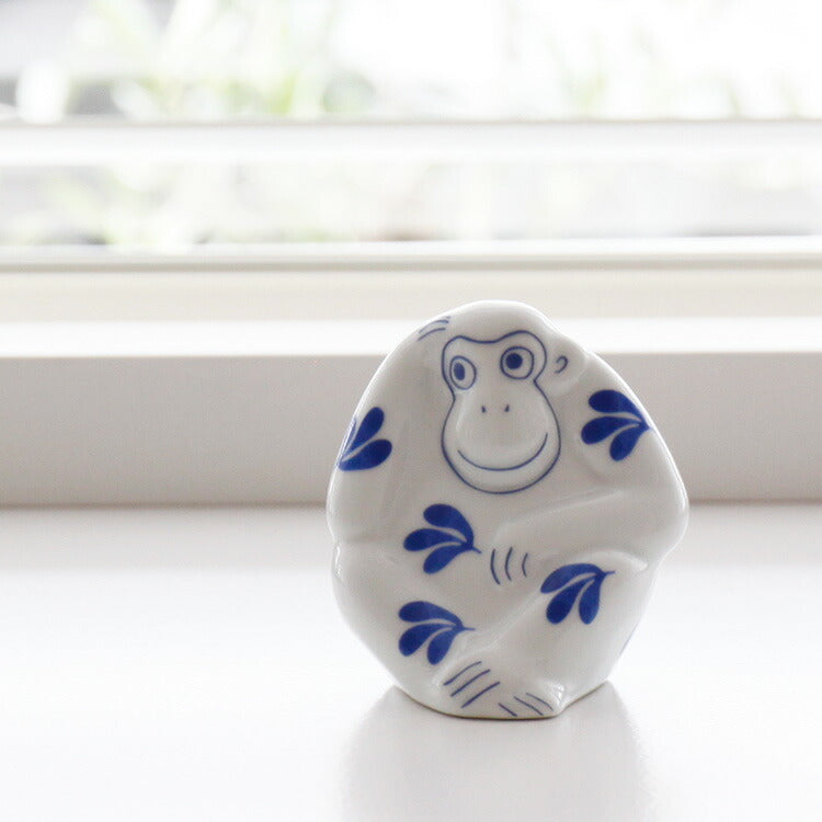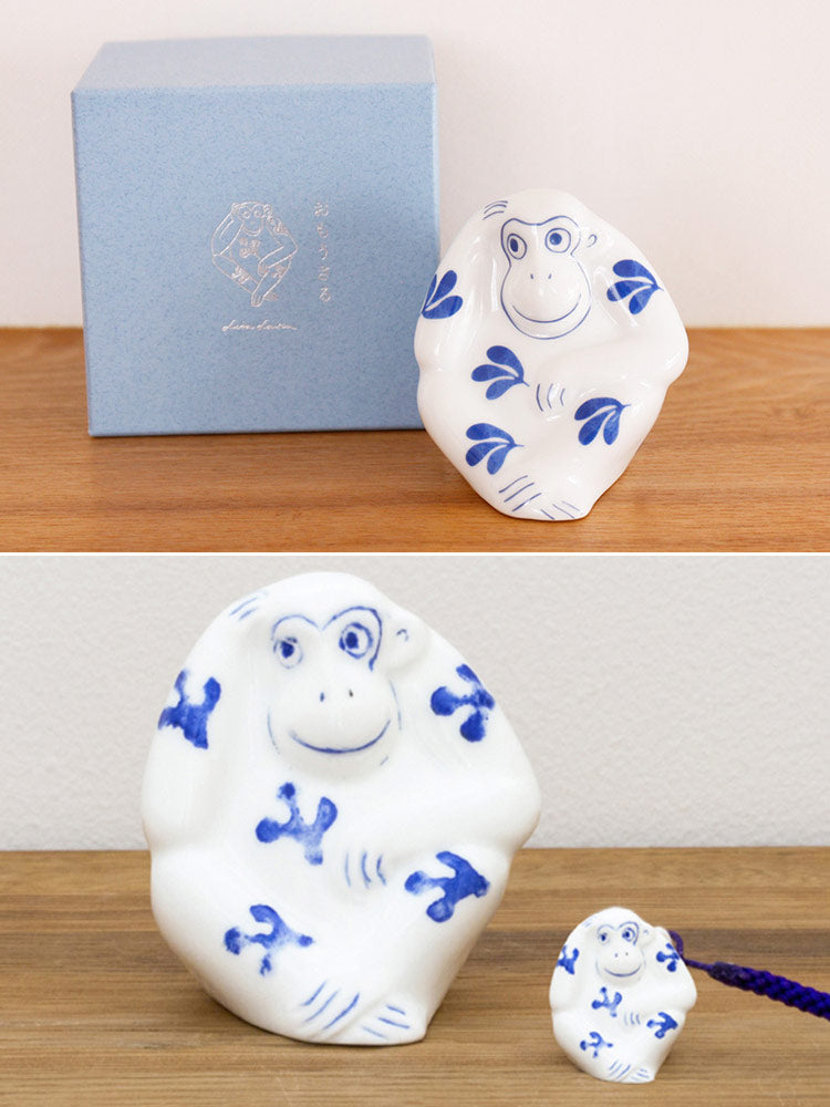 形はそのままに、もっとミニサイズになった「おもうさる」の根付キーホルダーもございます。こちらも、置物と同じ長崎の波佐見焼で作られています。