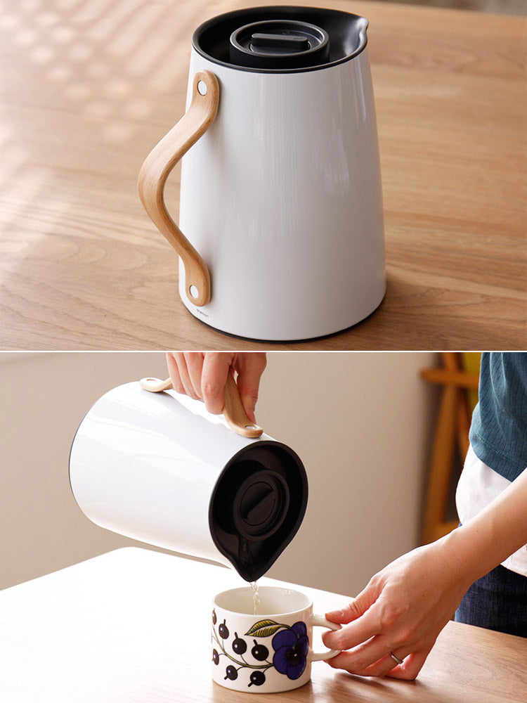 ステルトンの新たな顔となるべきブランドEmma(エマ)シリーズは、従来のスタイリッシュなStelton製ジャグとは一味違った雰囲気を持っています。 優しい曲線とカラーリング、そこに木製の持ち手を加えることで、モダンで暖かみのあるデザインに仕上がっています。 デザイン性だけでなく、機能性も抜群のジャグは、毎日のティータイムをより充実したものにしてくれそうです。