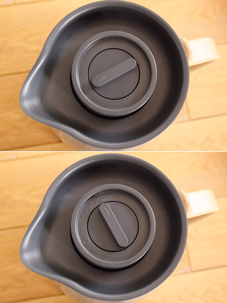 中のフィルタが交差することで、○のメモリに合わせるとお茶を抽出でき、✕のメモリに合わせるとお茶が抽出されない仕組みになっています。