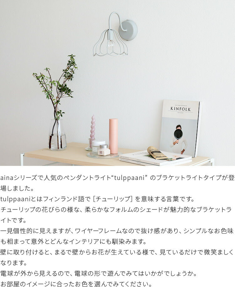 ainaシリーズで人気のペンダントライト“tulppaani” のブラケットライトタイプが登場しました。